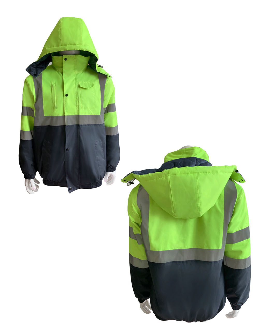 Fabric: 150D Oxford Inner: 100% Cotton 140g Reflective tape: High Reflective Tape Color: Green&Navy;Orange&Navy