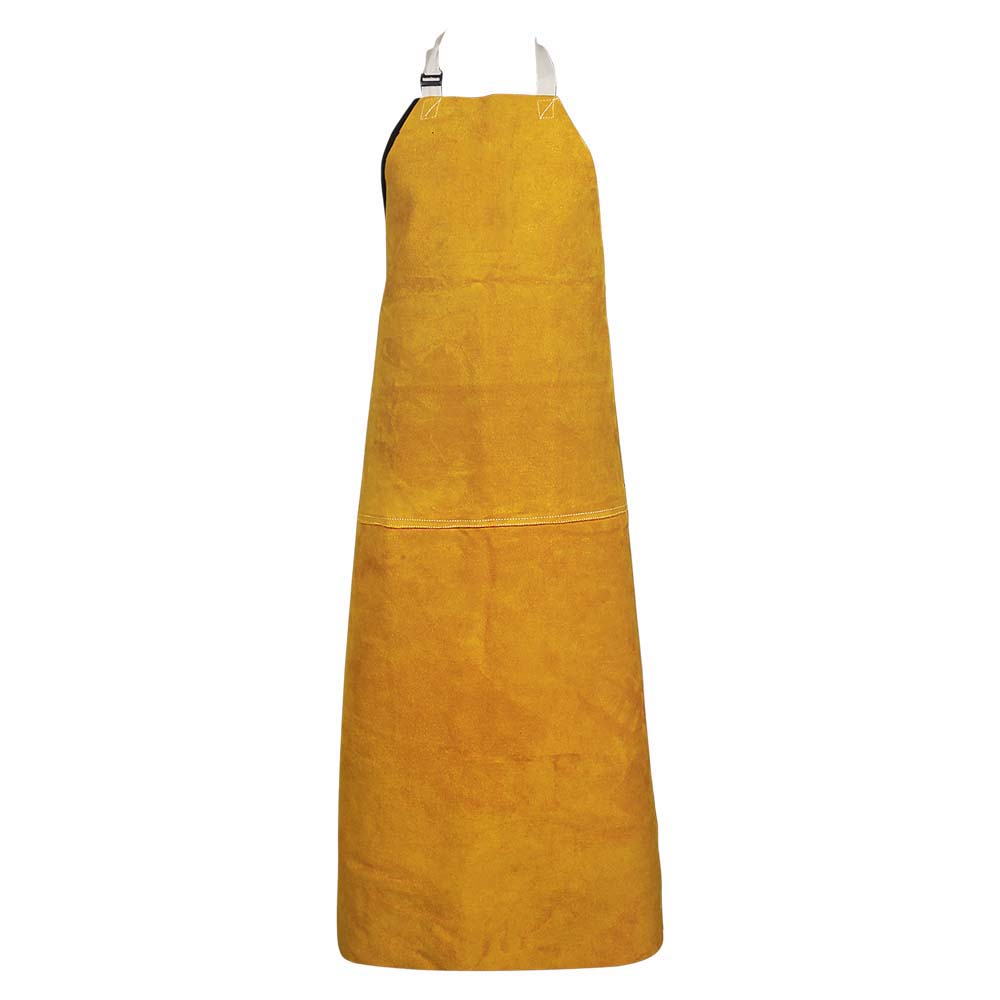 Welding Accessories Welder? Bib Apron made of golden cow split leather, Cotton strap on neck, 2 pieces. Black Piping.