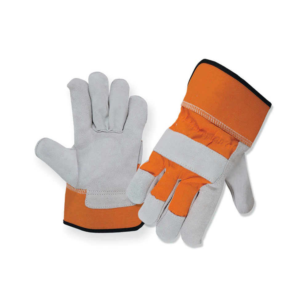 WORKING GLOVES M/O SPLIT LEATHER BACK YELLOW DRILL CLOTH WITH RUBBERIZED CUFF & LIINING STITCHED WITH/WITHOUT KEVLAR THREAD