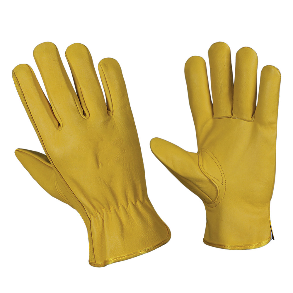 Driver’s glove, Palm & top made of yellow cowhide leather, key stone thumb, elastic on wrist, yellow pipingon edge.