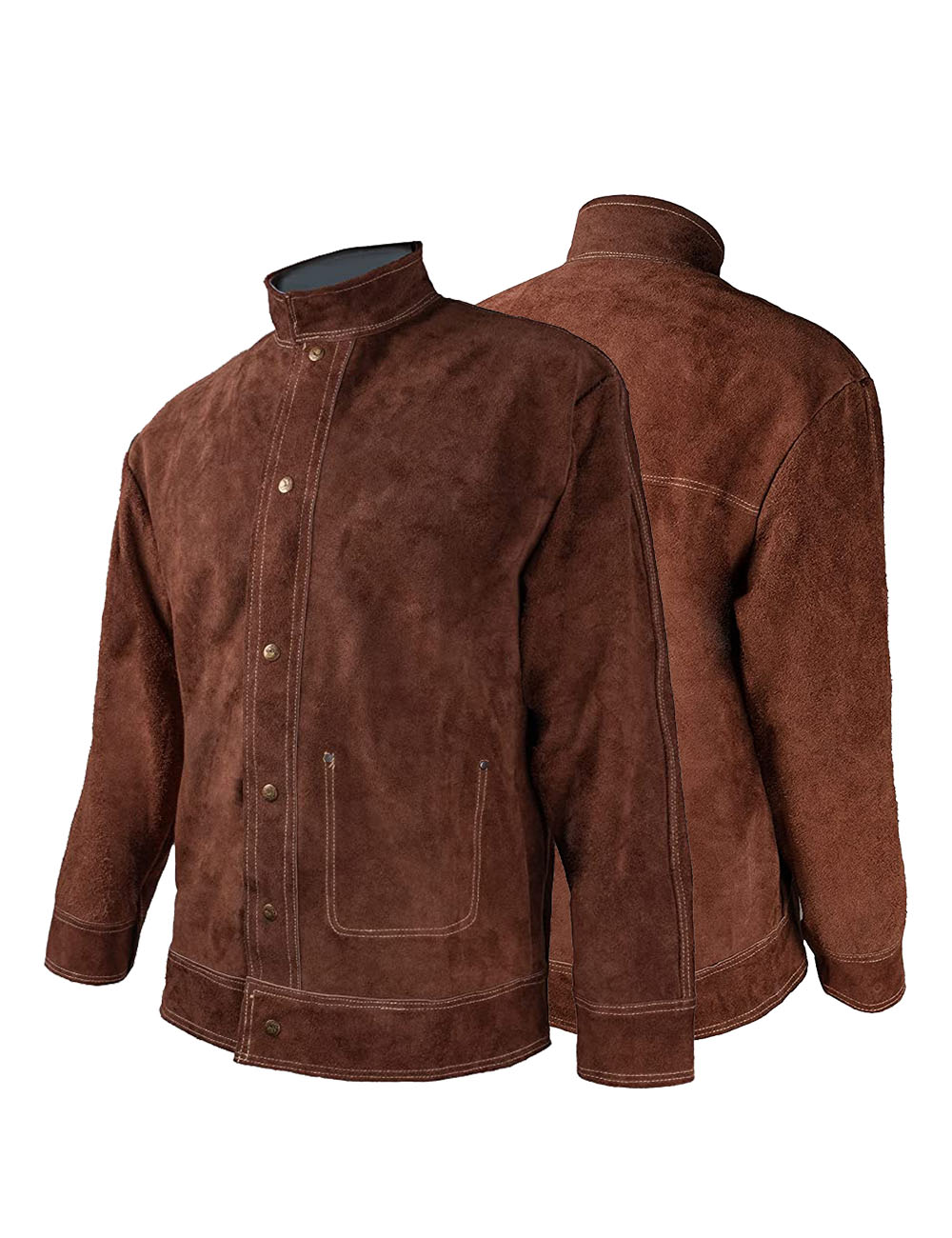 Superior Cow Split Leather: Welding jacket made from high quality cowhide leather, which is very durable and exhibits good thermal and burn resistance properties. It has thick full leather so you are not worried about ripping it and it is built to last.