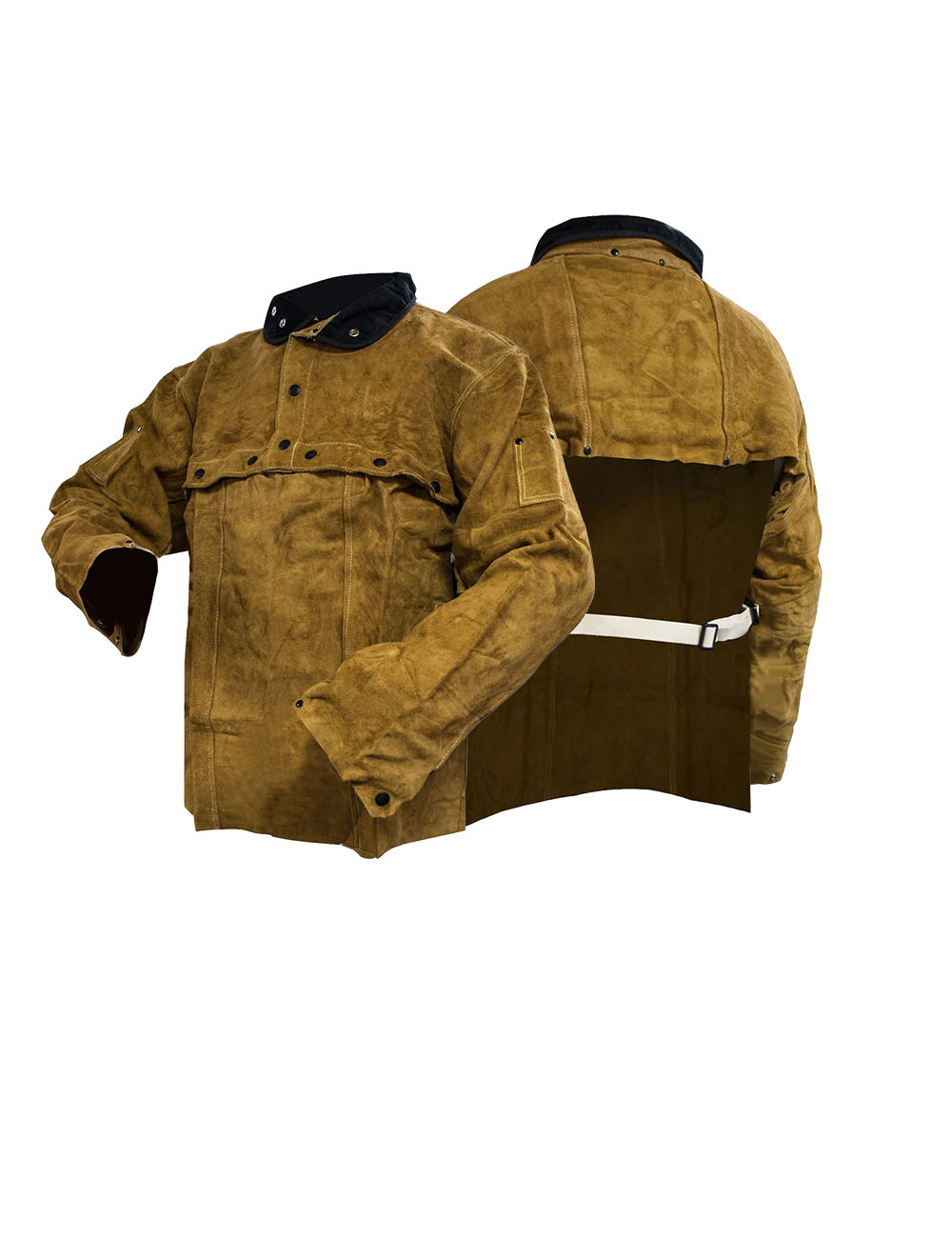 Durable split cowhide Stand-up corduroy collar Satin-lined shoulders Gusseted underarms Dual scribe pockets